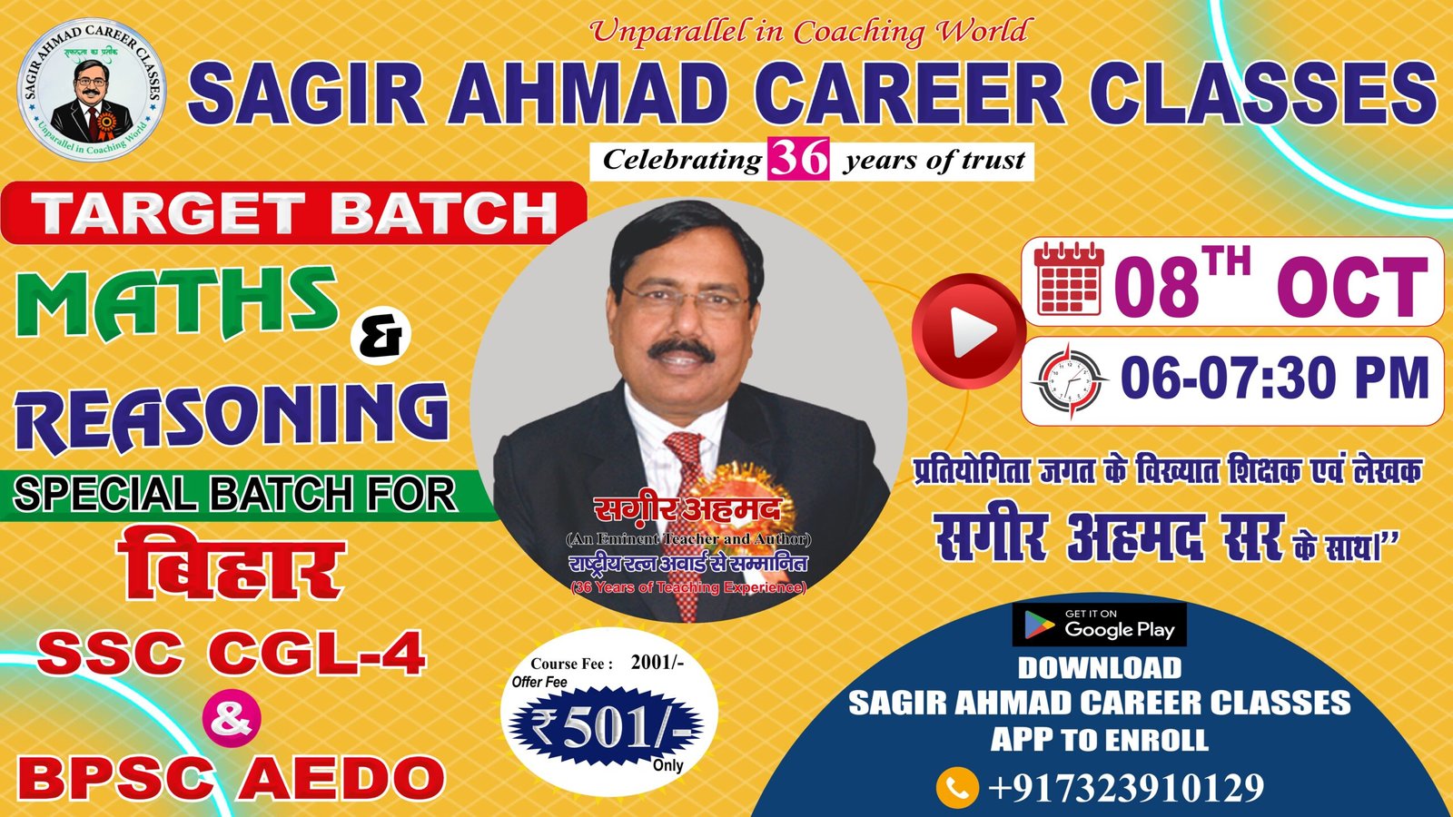 Personalized guidance and doubt-solving sessions to ensure every student understands concepts clearly. Sagir Ahmad Sir’s proven methods help students prepare smarter and faster.